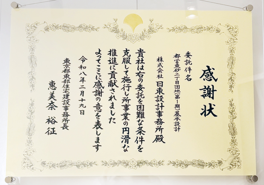 2026.2 東京都東部住宅建設事務所より表彰いただきました